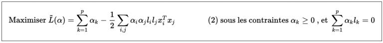 When you finally got the optimal Lagrange multiplier α your decision function is now complete. The hyperplane equation can be translated in the initial descirption space thanks to the kernel function k as follow: