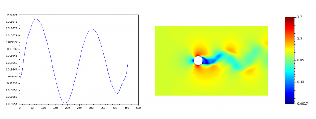 Based on this tool, our partner is now able to fast model the flow around the cylinder based on empirical data but also to make prediction on the flow behavior for a non simulated cylinder rotation speed case. Moreover, the time of simulation of the flow around a single wind turbine was reduced, from several hours of FEM computing on a cluster, to a Scilab reduced model providing results on a regular PC station within seconds.
